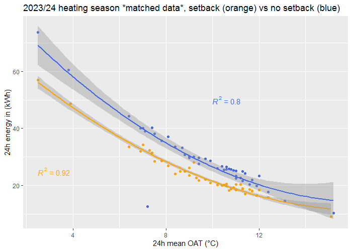 I'll see what I can come up with. The essence of the latest analysis is matched controls, if we can find a way of matching on the other variables then progress but inevitably the tighter the matching the fewer the data points remaining, but arguably the more useful they are. That said, I will soon have a whole new data set I can add, from the current 2024/25 heating season, but we will have to bear in mind there have been significant changes, notably opening up all the valves, in the current season.