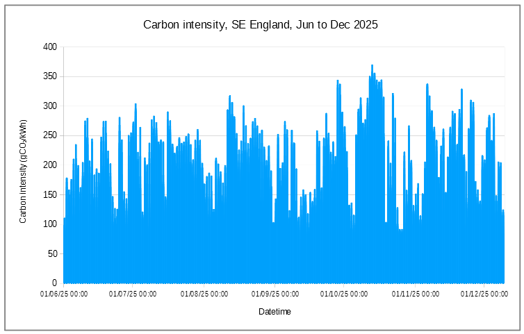 I’ve been capturing carbon intensity into Home Assistant for quite some time. There was a hiatus with the API that resulted in my having to ditch what I had and start again, but I’ve got all the data for my region since 1st June (hourly readings) which I can send to you if you want.