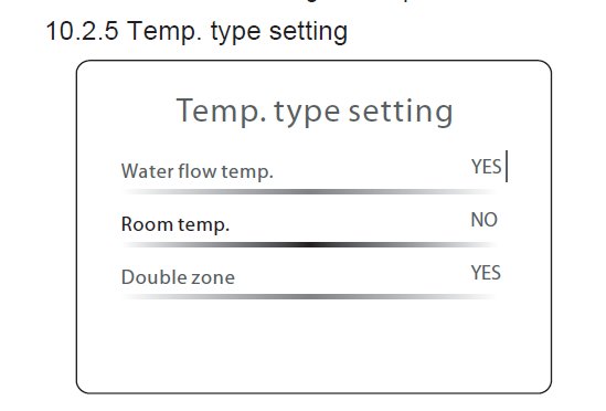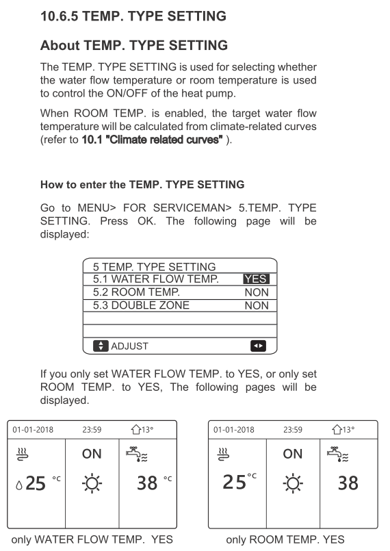 As far as I can understand the above text from the manual, that setting is the fixed flow temp non-WC setting, while the totally illogically named ROOM TEMP setting is the one that enables WC (climate curves in Midea-speak: "When ROOM TEMP. is enabled, the target water flow temperature will be calculated from climate-related curves"), which uses the outside air temp to set the flow temp via the WCC you have in use. This iconic use of iconography by Midea is further confirmed by the 'Satus Icons' drawing in my wired controller manual. When you have the setting on ROOM TEMP (ie WC) then there is no pain (no tear drop) and the number in the middle of the left hand panel is meaningless.