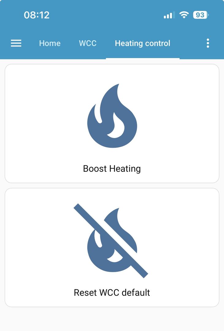 As the above seems to be a very rare occurrence (in that my default settings will work for the vast majority of the time) I have just set up two simple button cards on home assistant which then run a script to boost the WCC values by 1 degree. I do have the sliders that I can use to change these settings but they are a little small and fiddly to change on my phone, hence why I wanted a button.