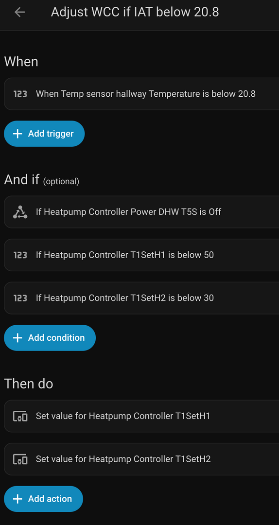 I've simplified the WCC setting automations which adjust the curve if weather conditions result in IAT dropping too low, so here's what the 'indoor temp too low' one now looks like.