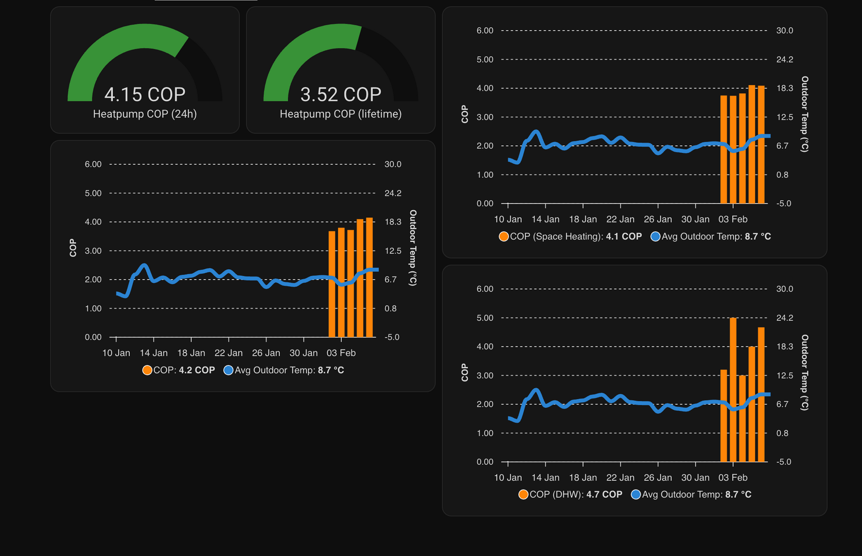 All in all, things are working very well. Efficiency wise again the lifetime COP seems to be generally creeping up but I wouldn't say there is a massive difference between the efficiency that homely was achieving, versus this approach. It is certainly no worse, and if anything slightly better.