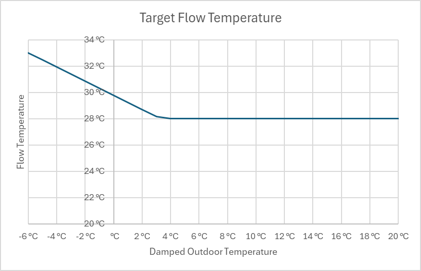 Part of this seems to be due to what seems to be a small mistake in the flow temperature control logic on the Bosch 5800i as it always overshoots the target flow by about 3-3.5°C (even though the flow-return dT is only 3K). It feels like something in there is still assuming a 7K flow-return dT, which is the unit's default, although it recommends lower dT for underfloor only systems.