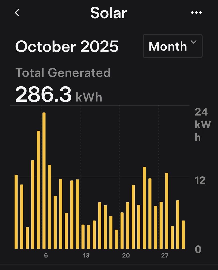 @allyfish It was going so well with month after month showing increases over previous years of solar energy production; unfortunately, October had at least 30% of the month with day-long