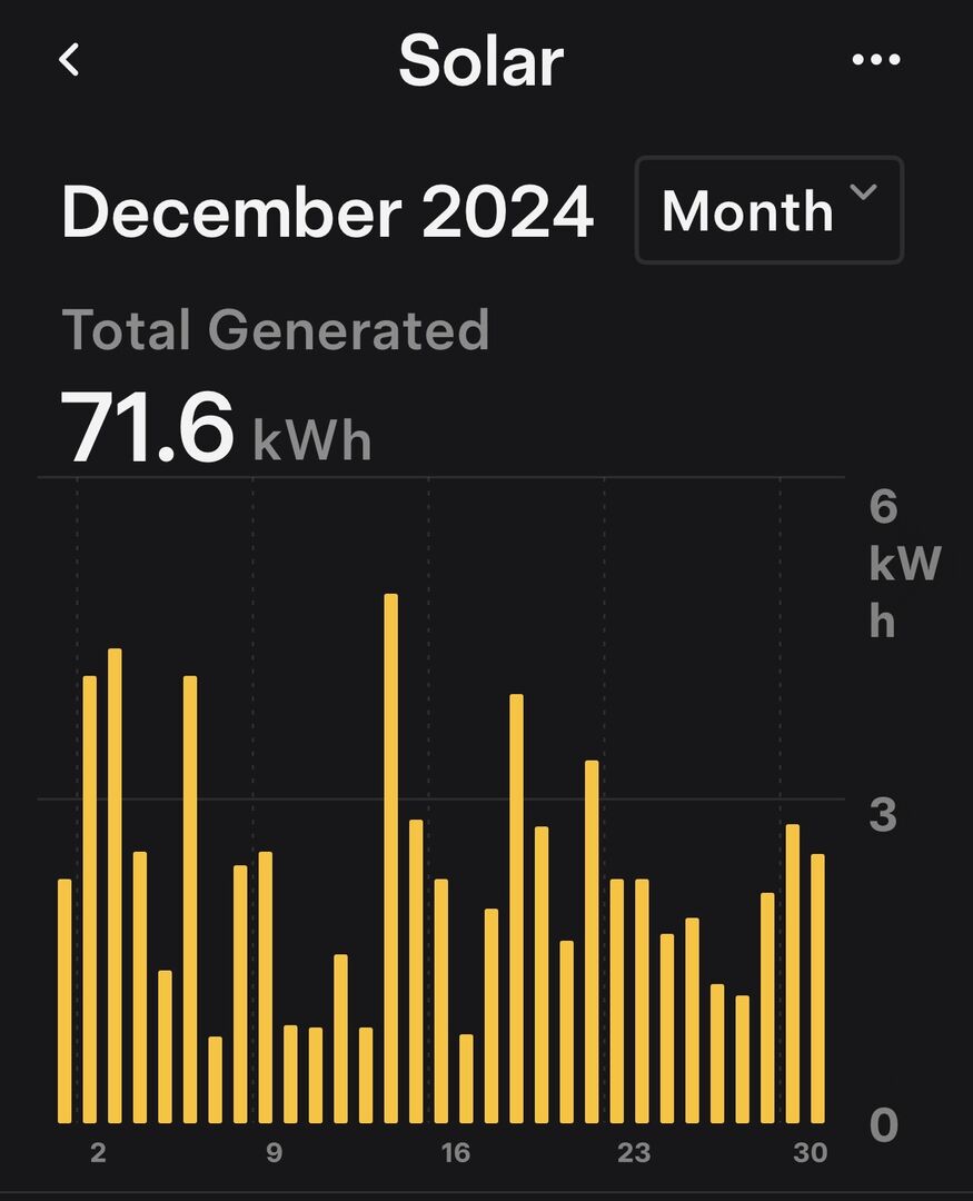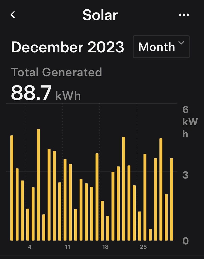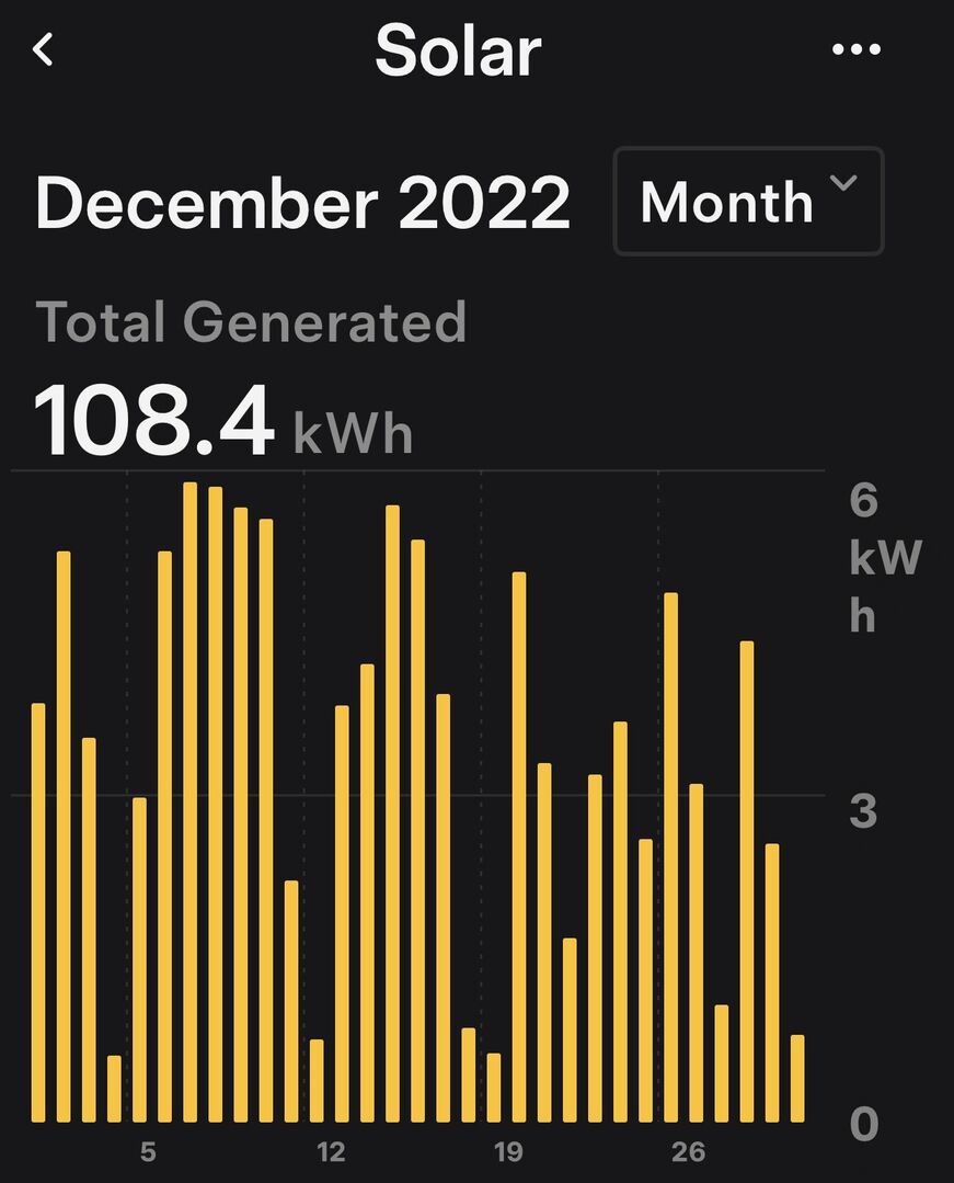 @tim441 I have just realised that I omitted the December 2022 graph (Though 2023 was still my first full year of solar power production) The total for December 2022 was actually the highest for that month over all subsequent years though.