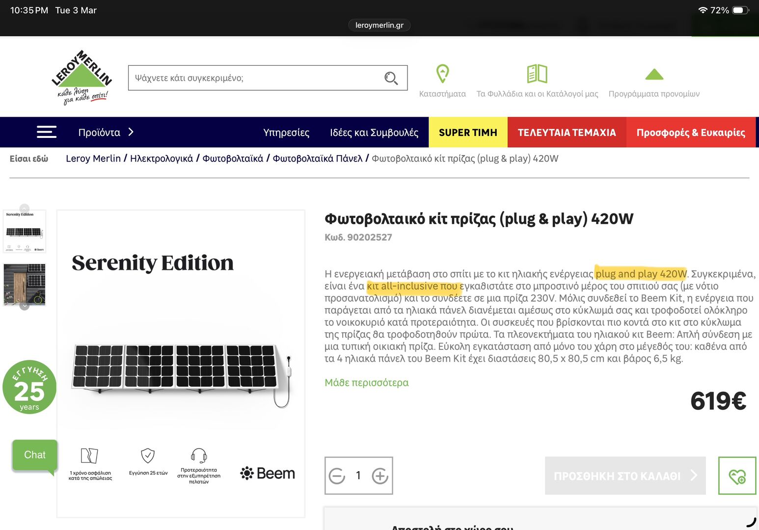 I’ve been flirting for sometime with the idea of getting as 2nd rudimentary backup such a kit (to be installed on the spot if our rooftop panels are covered with snow, just to power communications) but I was put off by its size…. We ended up with a backup petrol generator that has never been used up to now.