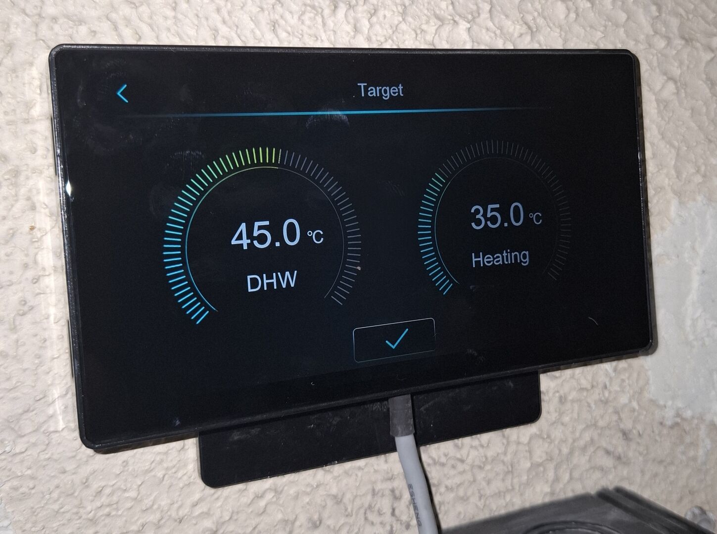 The hard wired display unit for the ASHP system is reasonably user friendly and will allow me to set DHW and Flow temps, as well as access some system parameters - No I haven't yet. The control is via a wifi link from the Honeywell Home unit which then activates hard wire comms with the ASHP. There is supposed to be a Data Transfer Unit (DTU) connected within the ASHP cabinet which would allow an ability to control the pump via a phone app. I have downloaded the app, scanned and inputted manual serial numbers where required but I cannot connect to the DTU and I have a 'DTU' in a wrapper left with packaging. I am assuming that the DTU has been removed so that comms can be controlled by the HH.