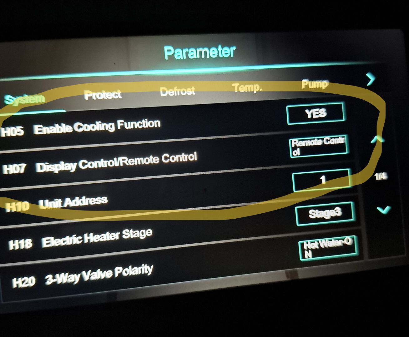 I attach a page from parameters on the display of the ASHP- H07 . If I change that from remote control to display control, will that disable the Honeywell input and work using the heat pump requirements or will I have to remove the BDR91 completely and rewire it?