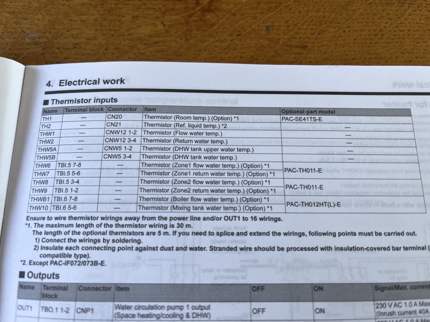 Anyway there is a table of thermistor inputs (attached) which mentions the Mixing tank on the last row and gives a part number PAC- TH012HT(L)-E for the thermistor.